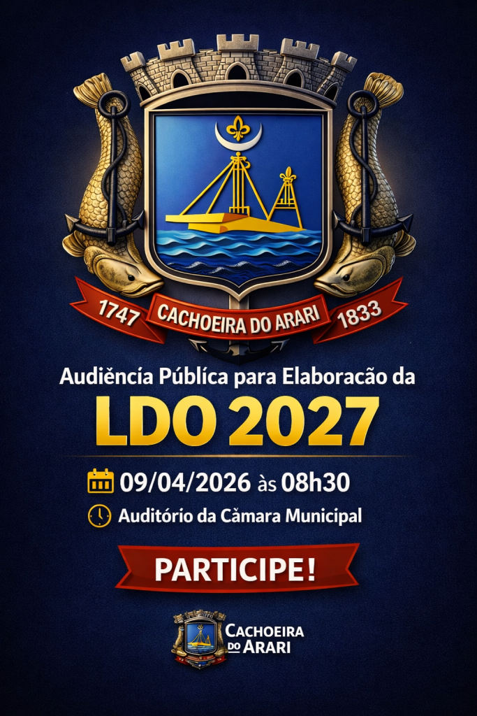 A Prefeitura Municipal de Cachoeira do Arari, através da Secretaria Municipal de Administração e Secretaria Municipal de Planejamento, convida toda a comunidade para participar da Audiência Pública de Elaboração da Lei de Diretrizes Orçamentárias – LDO 2027.