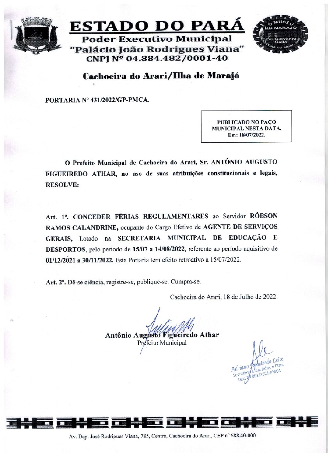 PORTARIA Nº 431-2022 Robsin Rmos Calandrine
